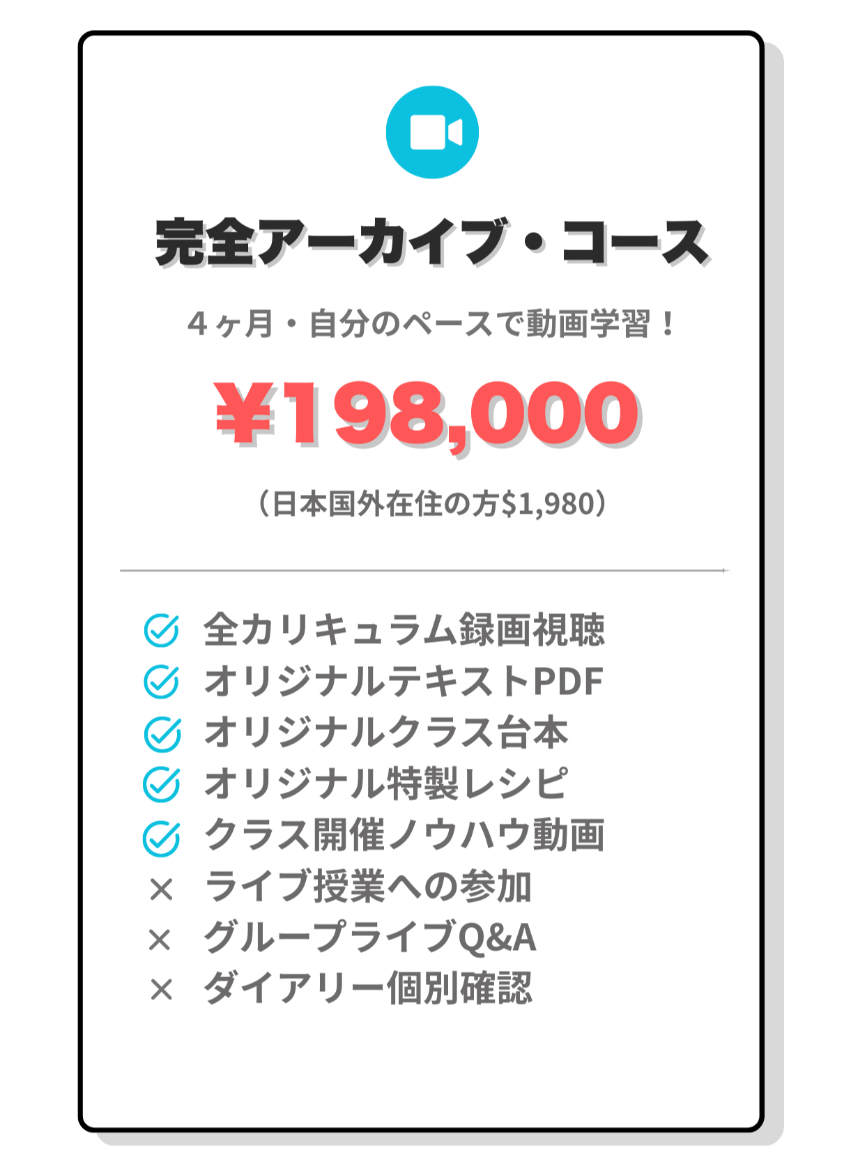 参加できない時は録画したものをご覧いただけます。後から何度でも見直せるので、復習にも使っていただけますます。(ライブで参加された方にもビデオはお届けします)