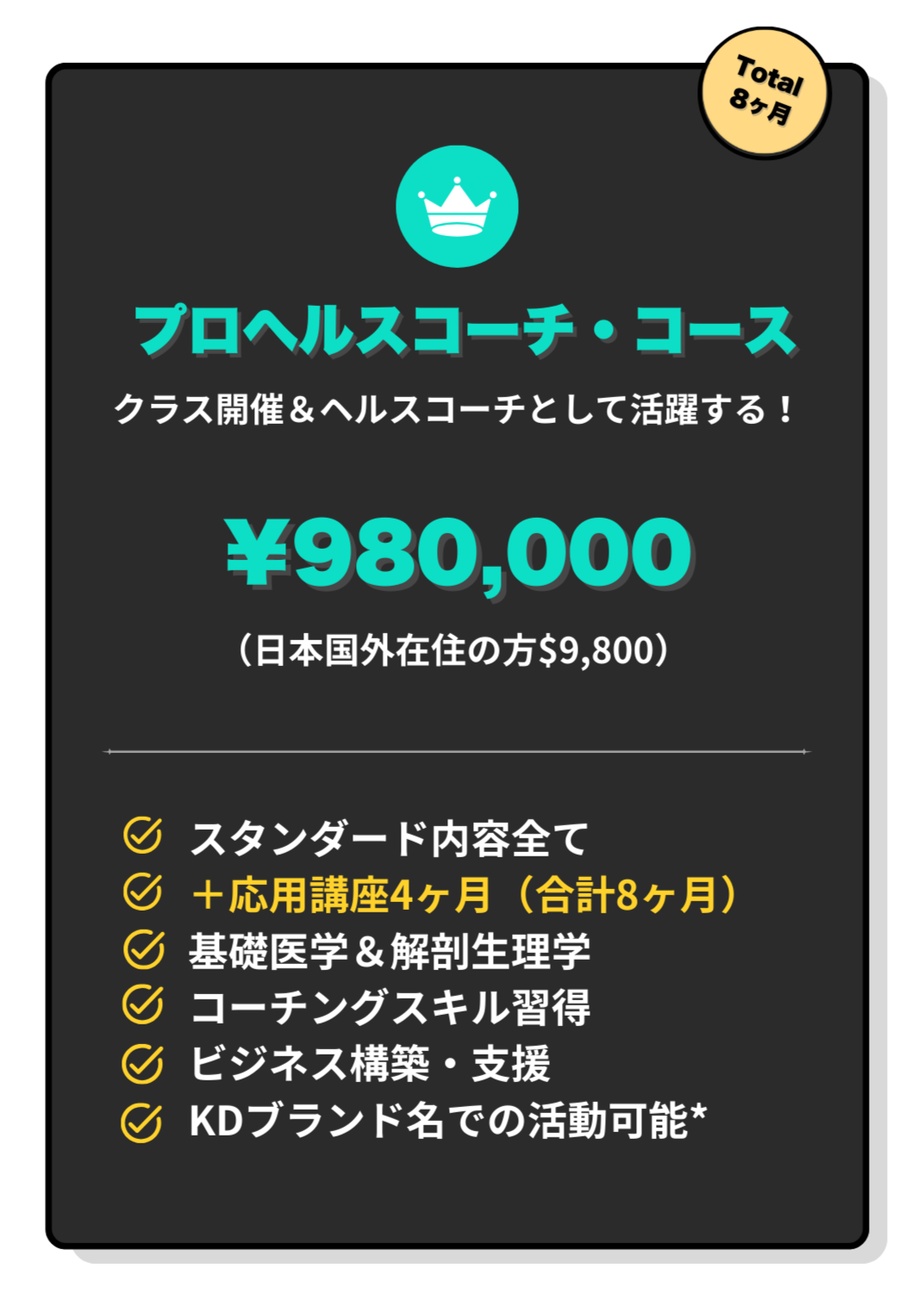 人気の3ヶ月・KD生活習慣改善コースを実践。自ら体験することで、体と心が変わることはもちろん、健康の素晴らしさや健康維持が本当に楽しく簡単であることを心から伝えられるようになります!